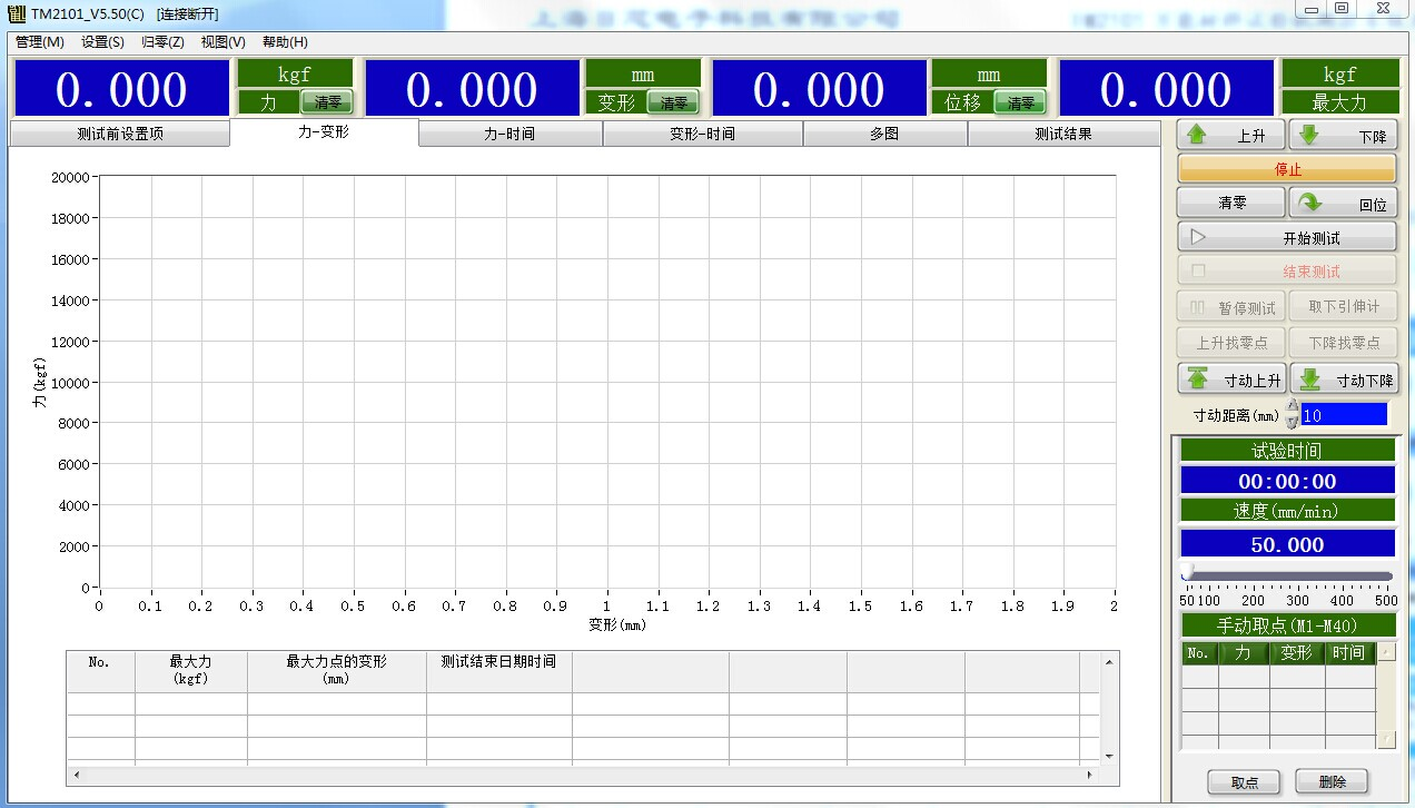 2 采用windows工作平臺(tái),參數(shù)設(shè)定全部點(diǎn)選,操作簡(jiǎn)單; 2 采用單一畫(huà)面操作,不需進(jìn)行畫(huà)面切換; 2 軟件接口具有簡(jiǎn)體中文、繁體中文及英文三種語(yǔ)言,切換方便; 2 可自行規(guī)化測(cè)試表格模式; 2 測(cè)試數(shù)據(jù)可在主畫(huà)面中直接呼叫; 2 可同時(shí)進(jìn)行多條曲線之?dāng)?shù)據(jù)比較; |