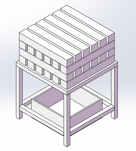 ● A類火滅火試驗模型由堆放在金屬支架上的木條構成,木材采用云杉、冷杉或密度相當的松木。木條應經干燥處理,使其含水率保持在9%?13%。木條由四層構成,每層六根方木,方木的橫截面為40mm×40mm的正方形,和長度為300mm(5m3以下試驗空間)或450mm(5m3以上試驗空間),木垛層間呈直角交錯放置,每層方木之間間隔均勻擺成正方形,將方木及層間釘起來形成木垛。